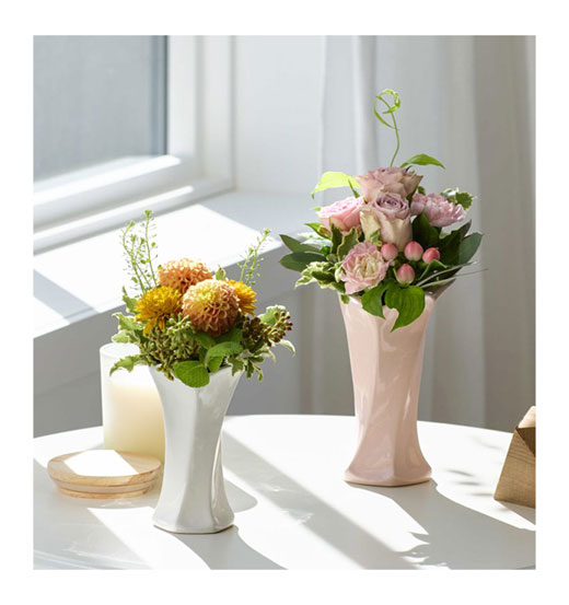 ■背面が立ち上がった花びらのようなフリルが印象的な花器