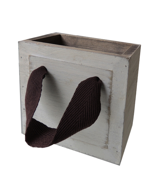 キャーリー紙袋・小グレイ■まるで紙袋のような木製花器です。■お好みのリボンに取り替えていただくこともできます。■ヴィンテージ仕上げとなります。